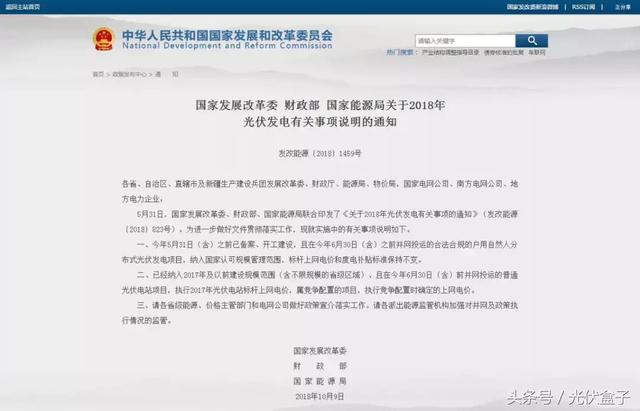 10月9日,国家发展改革委、财政部、国家能源局联合发布《关于2018年光伏发电有关事项说明的通知》(下称《通知》),对5月31日印发的《关于2018年光伏发电有关事项的通知》(下称“531”新政)实施中的有关事项做了进一步说明。