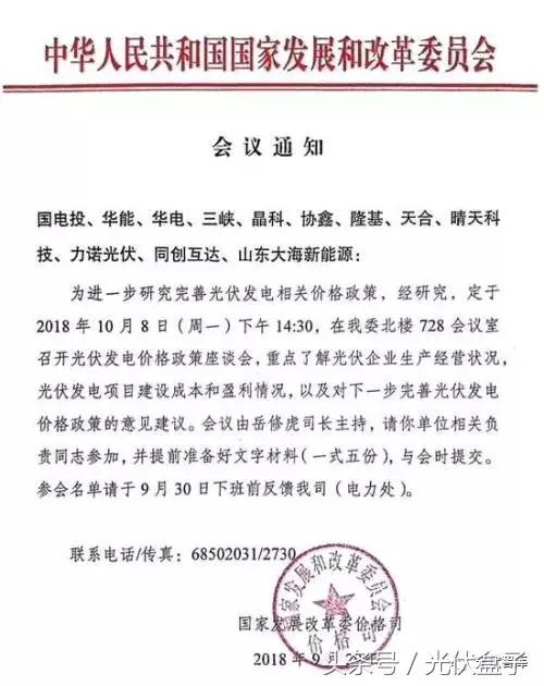 记者从业内拿到的《会议通知》显示,这次会议由国家发改委价格司召集,目的是进一步研究完善光伏发电相关价格政策。