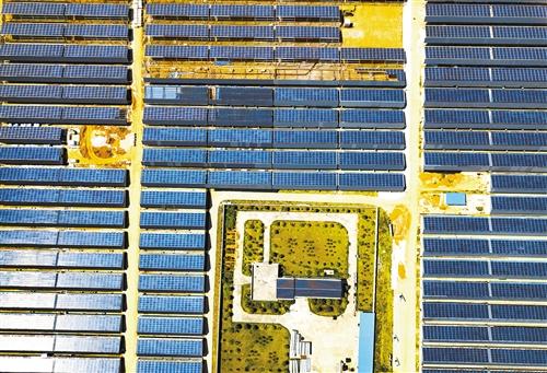 9月26日,在江西省宜丰县羿飞永徽公司,光伏发电面板在秋阳下熠熠生辉。赵浩旭摄