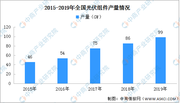 光伏组件是基于电池整合的具有封装及内部联结的,能单独提供直流电输出的、最小不可分割的光伏电池组合装置。光伏组件是太阳能发电系统中的核心部分,也是太阳能发电系统中最重要的部分。2019年,我国光伏组件产量98.6GW,同比增长17.0%。