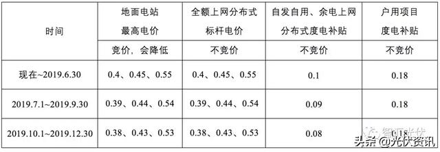 根据征求意见稿的标书,是“自政策发出后的第二个季度开始下调”。目前,已经是2019年一季度,即使政策月底发出来,那要从第二个季度开始下调,即3月30日电价不会下调,而6月30日、9月30日会分别下调0.01元/kWh。由于2020年电价政策还不确定,所以12月31日后的下降幅度可能就不是0.01元/kWh。
