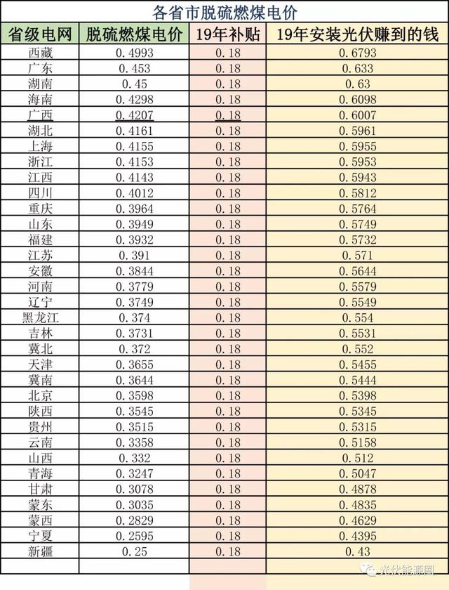 平价上网,意味着没有补贴,但是,卖电钱也是可以赚到的,参考下图中各地脱硫燃煤电价。