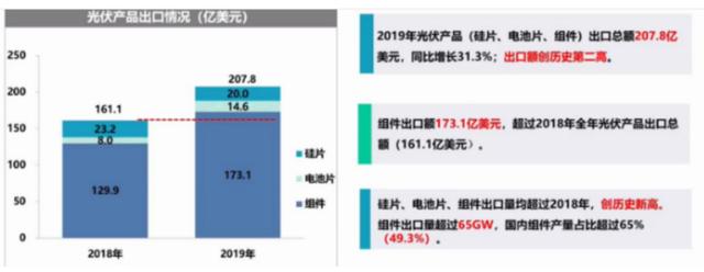 北极星太阳能光伏网讯:2019年光伏出口额达207.8亿美元,创历史第二新高。2020年2月14日,在阳光电源主办的“爱光伏一生一世”网络直播会议上,中国光伏行业协会秘书长王勃华介绍了2019年光伏产品出口的情况。