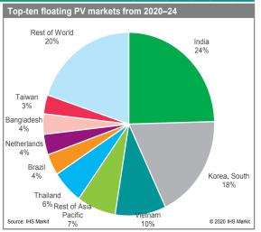 IHS最近的一个统计报告显示,阳光电源、天合光能和日本丸红是目前最大的水上漂浮电站投资商,中国的领跑者项目中,济宁和泗洪两个领跑者基地也主要为水上光伏电站,但是以桩结构为主。