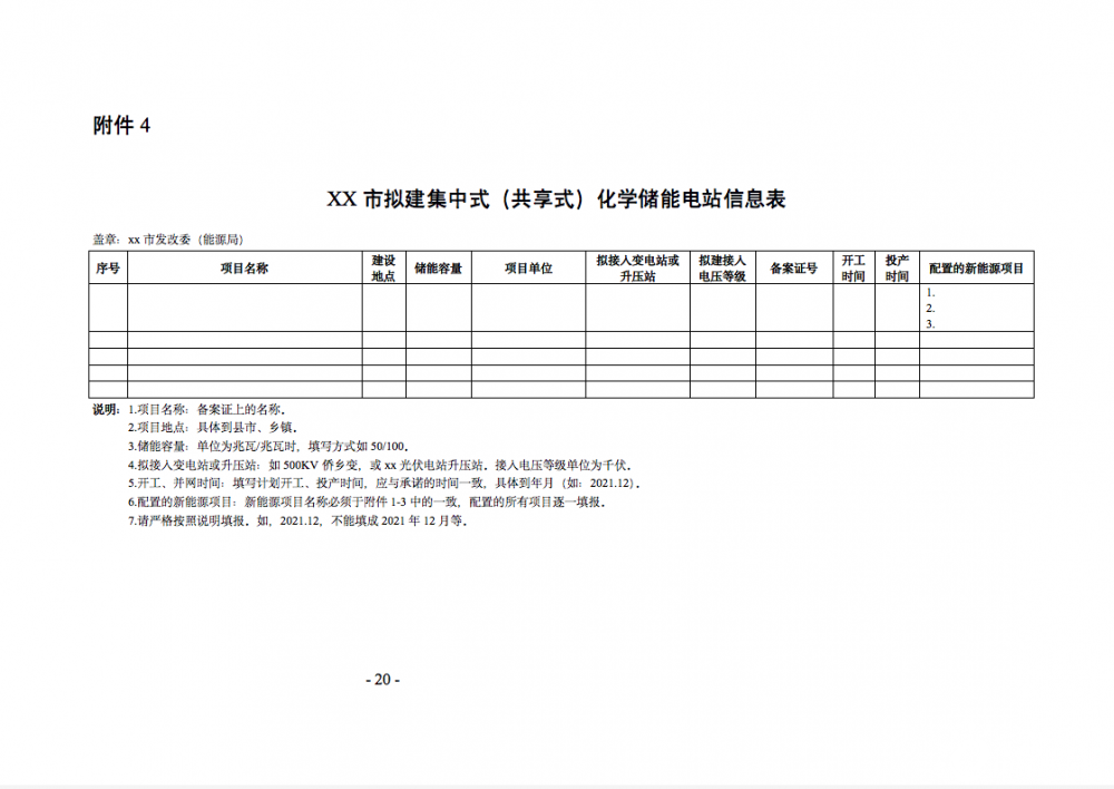 4.XX市拟建集中式(共享式)化学储能电站信息表