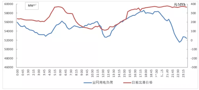 图1 当日全网负荷曲线与日前现货市场价格曲线