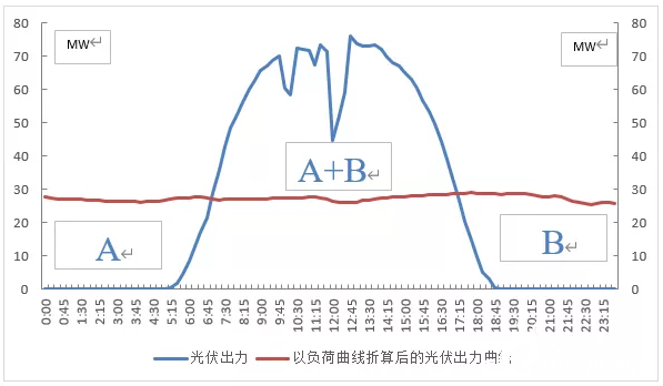 图3 某光伏电站出力曲线由储能系统折算为负荷曲线形状