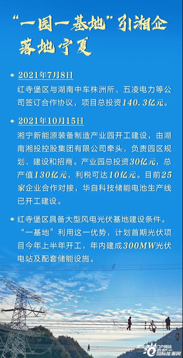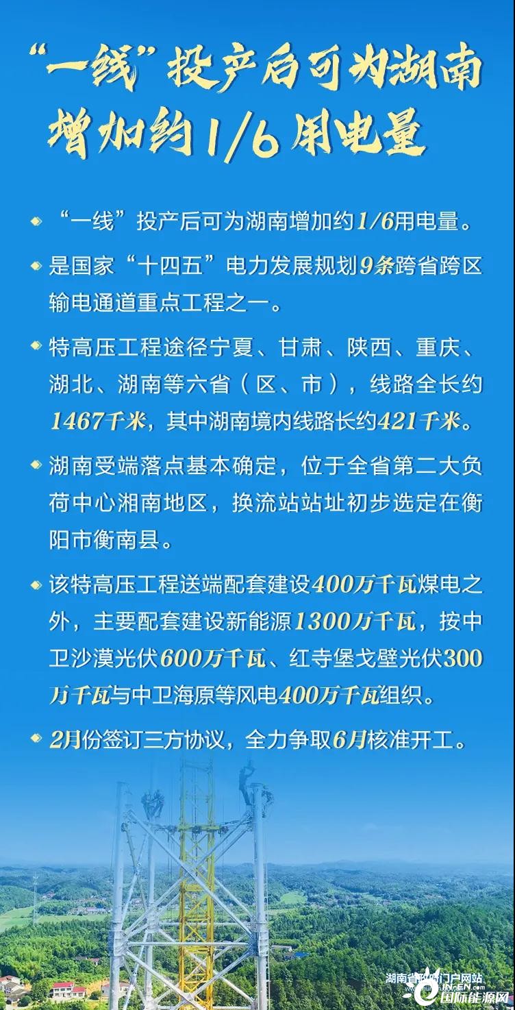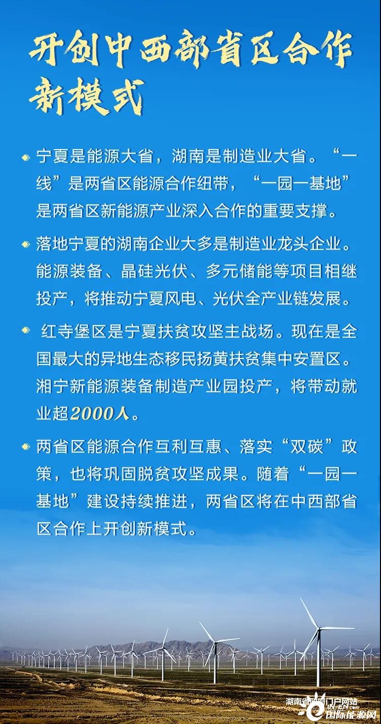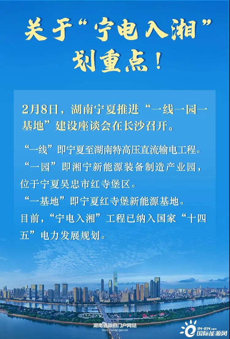 2月8日,湖南省政府与宁夏回族自治区政府在长沙举行座谈会,共商加快推进“一线一园一基地”建设。“一线”为宁夏至湖南特高压直流输电工程,“一园”为湘宁新能源装备制造产业园,“一基地”为宁夏红堡寺新能源基地。