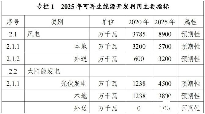 大力发展风电和太阳能发电。统筹本地消纳和电力外送,在确保电力系统安全稳定和消纳市场的基础上,到2025年,风电光伏装机力争达到3000万千瓦以上。