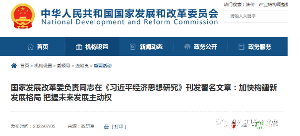 日前,国家发展改革委负责同志在《习近平经济思想研究》刊发署名文章:加快构建新发展格局 把握未来发展主动权。文章提到: