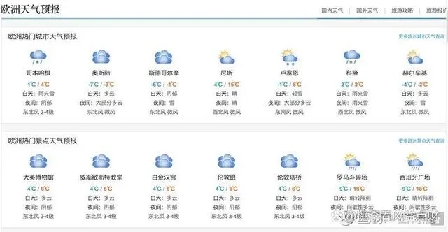 3.在人工费用增加,发电收益减少双作用下,业主不强求尽快装机。(以下为欧洲主要城市天气预报,在低温和雨雪气候下,装机更为缓慢)。
