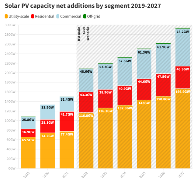 然而,国际电力署的可再生能源最新报告认为,这一比例至2027年需达到27%。也就是说,为了确保功能可行,太阳能将需要维持其2022年的增长率(24%)。