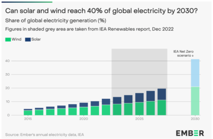 风电和太阳能在2030年的全球电力中占比是否会达到40%?