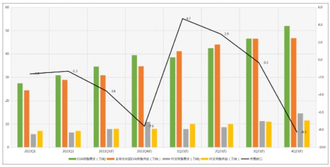 粒子方面,EVA粒子供需偏紧,N型电池片产能释放带动POE胶膜需求提升