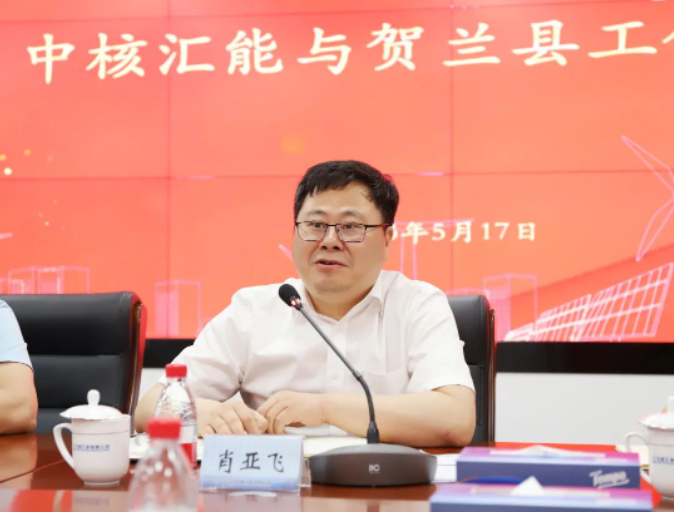 肖亚飞对丁炜一行的到访表示热烈欢迎,并详细介绍了中核汇能的发展现状和新能源规划。他表示贺兰县区位条件优越、营商环境好、资源产业丰富,在新能源项目方面的合作空间广阔、潜力巨大。近年来,中核汇能坚持贯彻落实双方战略合作协议要求,在贺兰县委县政府的关怀和支持下,进一步发挥自身优势,聚焦产业发展,持续深化深度合作开放,发挥各自优势。未来,中核汇能将坚持高质量创新发展,全力打造行业领先的一流非核清洁能源公司,同时不断探索新业态、新领域。在今后的工作中,希望进一步加强与贺兰县的对接交流,主动融入贺兰县发展规划和区域定位,为贺兰县高质量经济发展做出更大贡献。